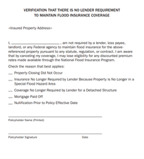 The Cancellation Verification Letter is required when a policyholder requests a cancellation due to their lender no longer requiring flood insurance. The letter serves as documentation that flood insurance is no longer mandated by any lender, loss payee, landlord, or federal agency. Policyholders can obtain the letter from their agent or insurer.
