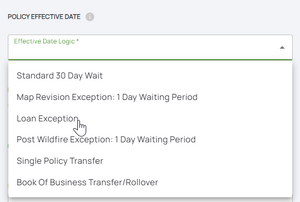- Loan Exception: If this policy is being purchased to meet a lender requirement for a new purchase, loan closing, or the increasing, extending, or renewing of a loan, the policy will go into effect at the time of closing provided the application and premium are received in a timely manner.