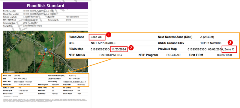 In the image above, the property is eligible for the Map Revision Exception so long as application/request and premium are received before December 24, 2025.