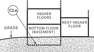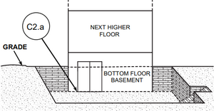 2B Basement with sub-grade egress The bottom floor is below ground level on all sides, and the area of egress is also below grade on all sides. This also applies to buildings with negative flow.