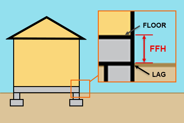FFH is determined based on the building's foundation type. The table below outlines common foundation types and how FFH is measured. The measurement will be to the Lowest Adjacent Grade (LAG), or the lowest point where the surrounding ground touches the foundation.